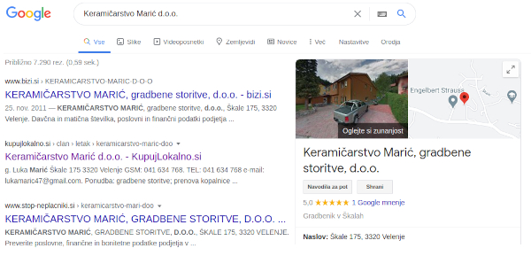 Google.si - vpis v iskalnik: besedni niz 👉 Keramičarstvo Marić
